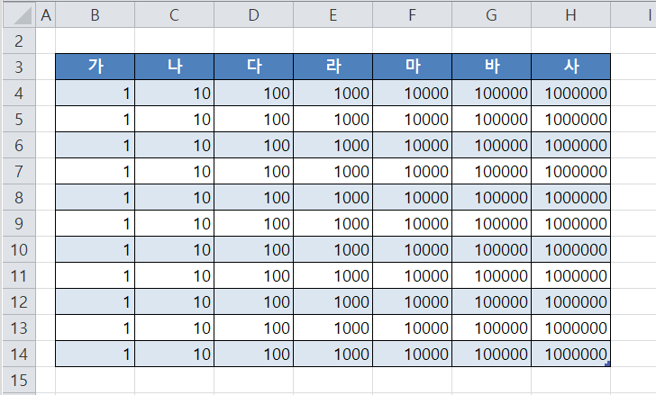 3. Ctrl + Shift + 방향키 : 선택한셀부터 마지막 셀까지 선택하기